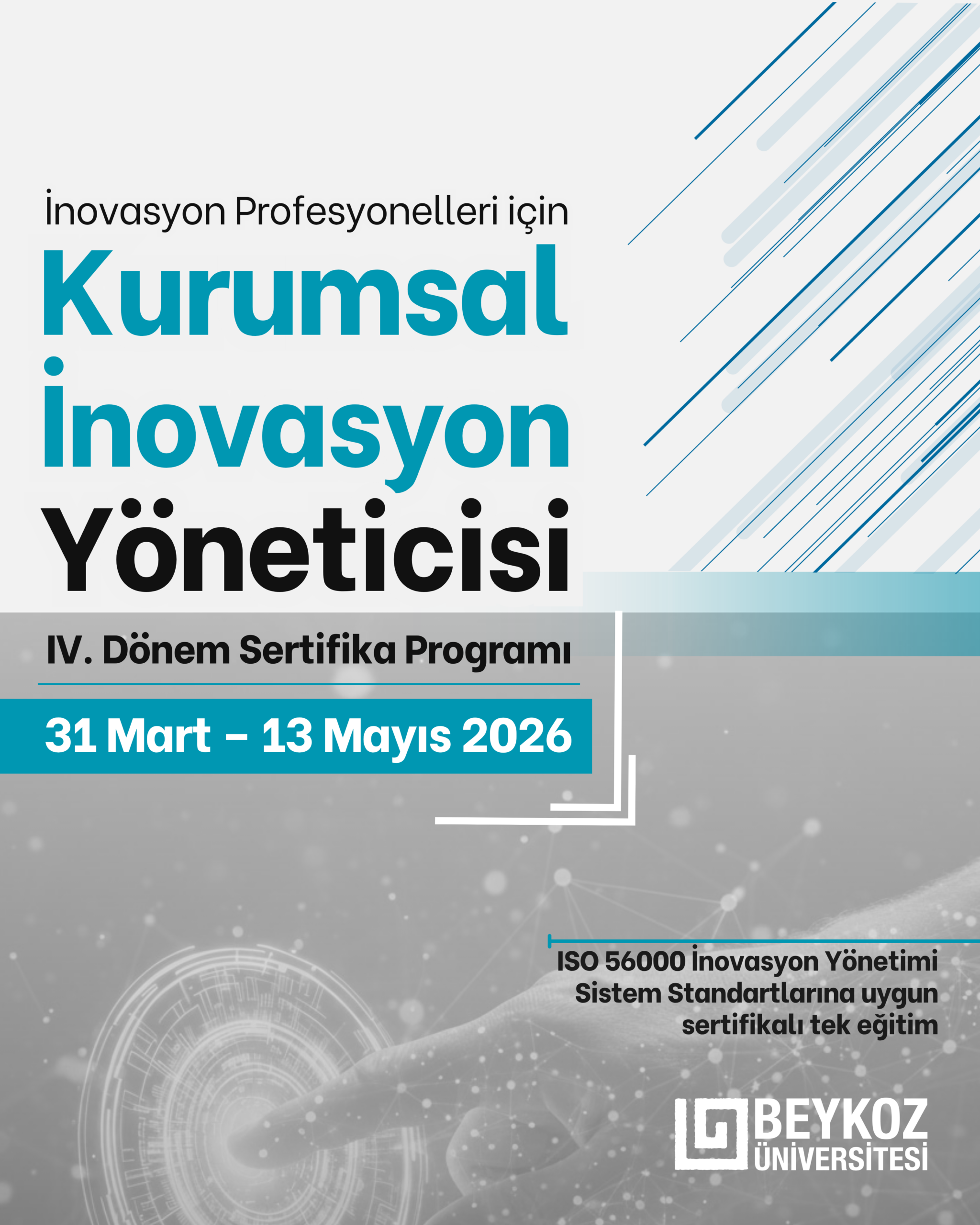 • Program, ISO tarafından yayınlanan ISO 56000 İnovasyon Yönetimi Sistem Standardı serisi rehberliğinde ülkemizde ilk defa düzenlenen sertifikalı eğitim özelliğine sahiptir.