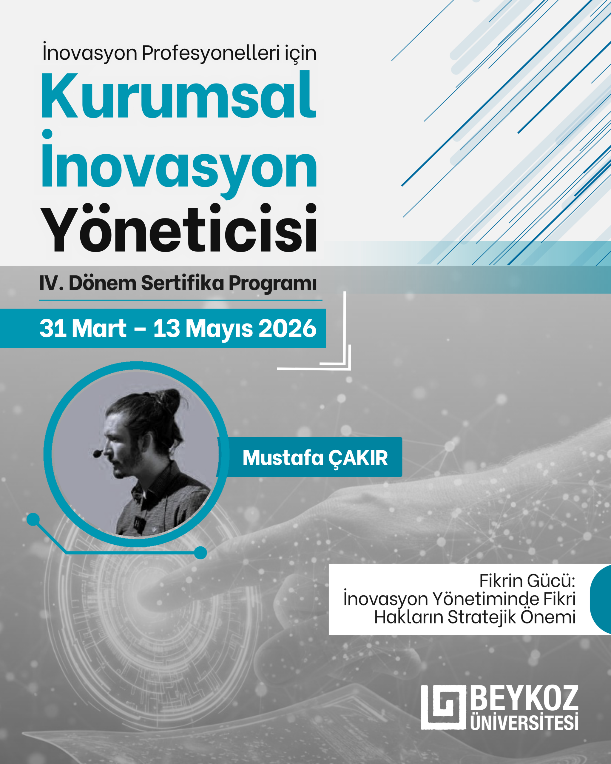 Program, katılımcılara inovasyonun kurumsal başarıdaki stratejik önemini anlatırken, bu süreçleri etkili bir şekilde yönlendirecek liderler yetiştirmeyi amaçlar. Katılımcılar, organizasyonlarının rekabet avantajını artıracak yenilikçi projeleri hayata geçirecek ve sürdürülebilir bir inovasyon ekosistemi oluşturma becerileriyle donanmış olacaklardır.