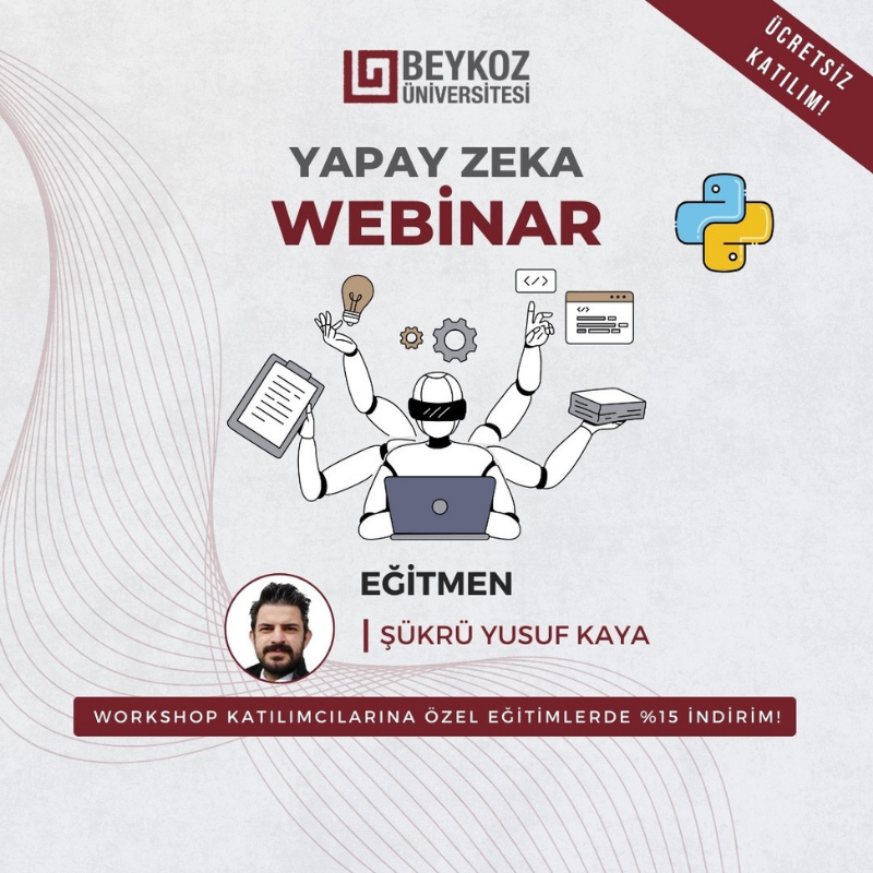 Beykoz Üniversitesi Yaşamboyu Öğrenme Merkezi olarak gerçekleştirdiğimiz Yapay Zeka Uzmanlığı Sertifika Programı Tanıtım Workshop’una katıldığınız için teşekkür ederiz.
